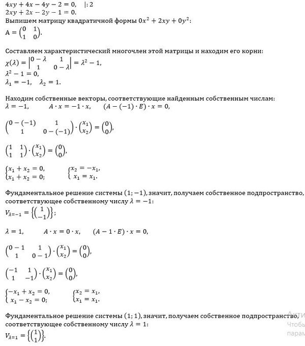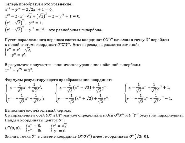 Исследование кривых второго порядка: Свести уравнение второго порядка к главным осям; определить тип линии; составить формулы преобразования переменных; сделать чертеж
