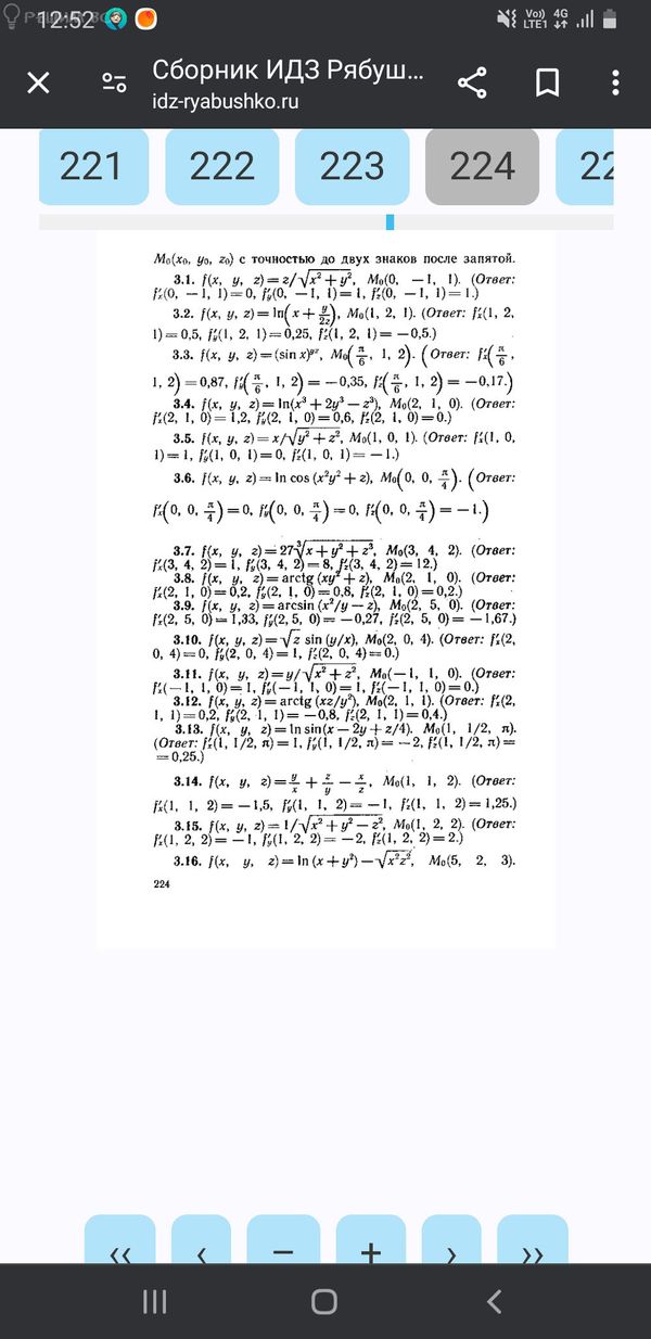 Ответ: f'_(x)(M_0) = -1, f'_(y)(M_0) = -2, f'(_z)(M_0) = 2