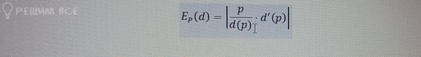 По-русски будет звучать так: Е Пэ от Дэ равно модулю пэ делённое на Дэ от Пэ, умноженное на производную Дэ от Пэ. А вот что это означает, я не уверен.