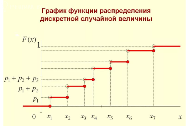 График функции распределения - ступенчатая функция вида: