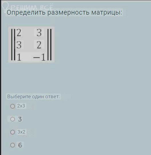 Строк 3, столбцов 2, значит, размерность матрицы [b]3 х 2[/b]