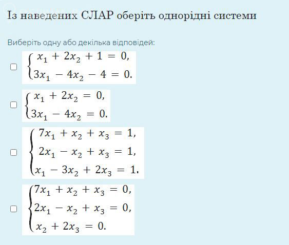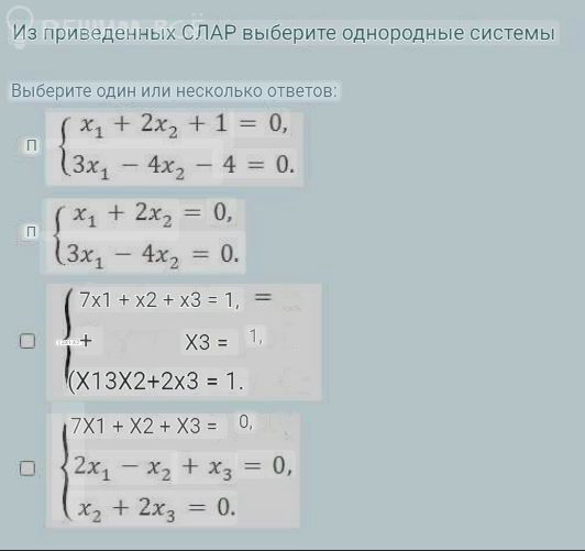 Однородная система линейных уравнений — это система линейных уравнений, в которой свободный член каждого уравнения равен нулю. Ответ: 2 и 4