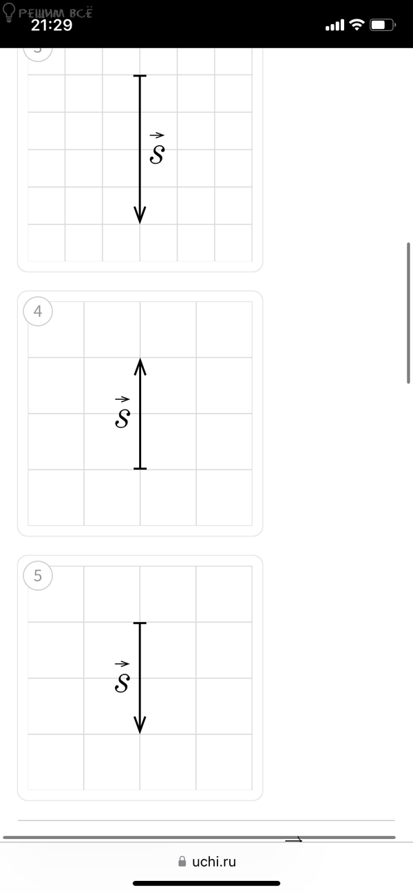 21:29 Р ] Прочитай условие и реши задачу. —› —› — Даны векторы Ъ, К, E) Построй векторы S, tuT =5 = так, чтобы S = 4b, t = —5k, T = 0, ББ›. — . —> Выбери верный вариант для вектора $. ^ |\+ uchi.ru