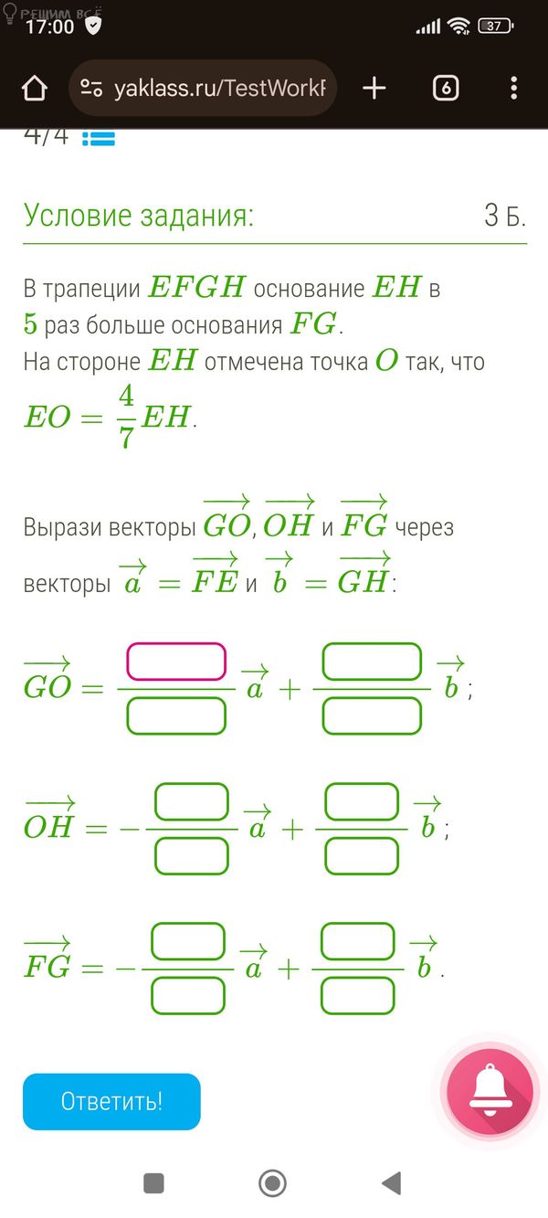 OH^(→)=GH^(→)-GO^(→)=b^(→)-(18/35)a^(→)-(18/35)b^(→)=