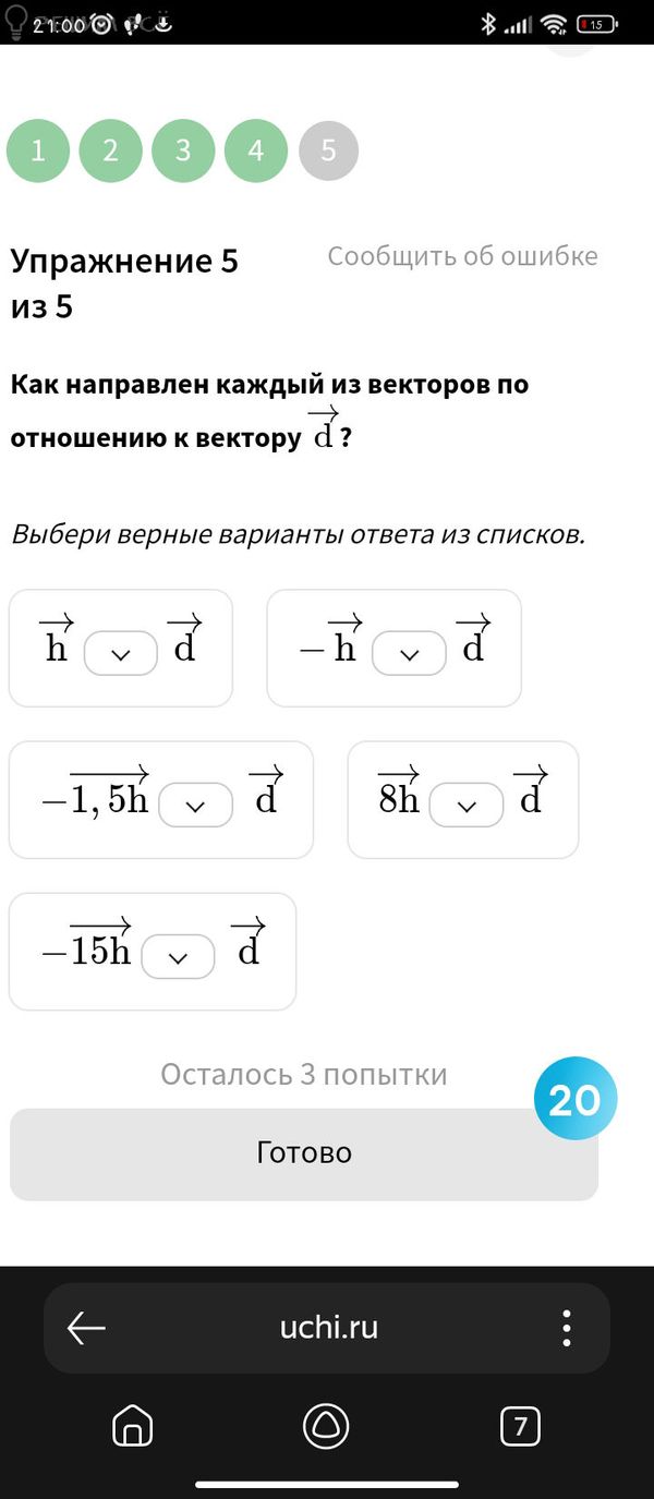 И наоборот, если h и d противоположно направлены, то 8h и d тоже противоположно направлены, а пары (-h и d), (-1,5h и d), (-15h и d) - сонаправлены.