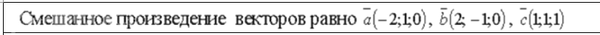 Смешанное произведение векторов равно: 1)4; 2)0; 3)1; 4)-4