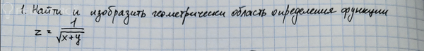 найти и изобразить геометрически область определения функции z=1/x+y в корне