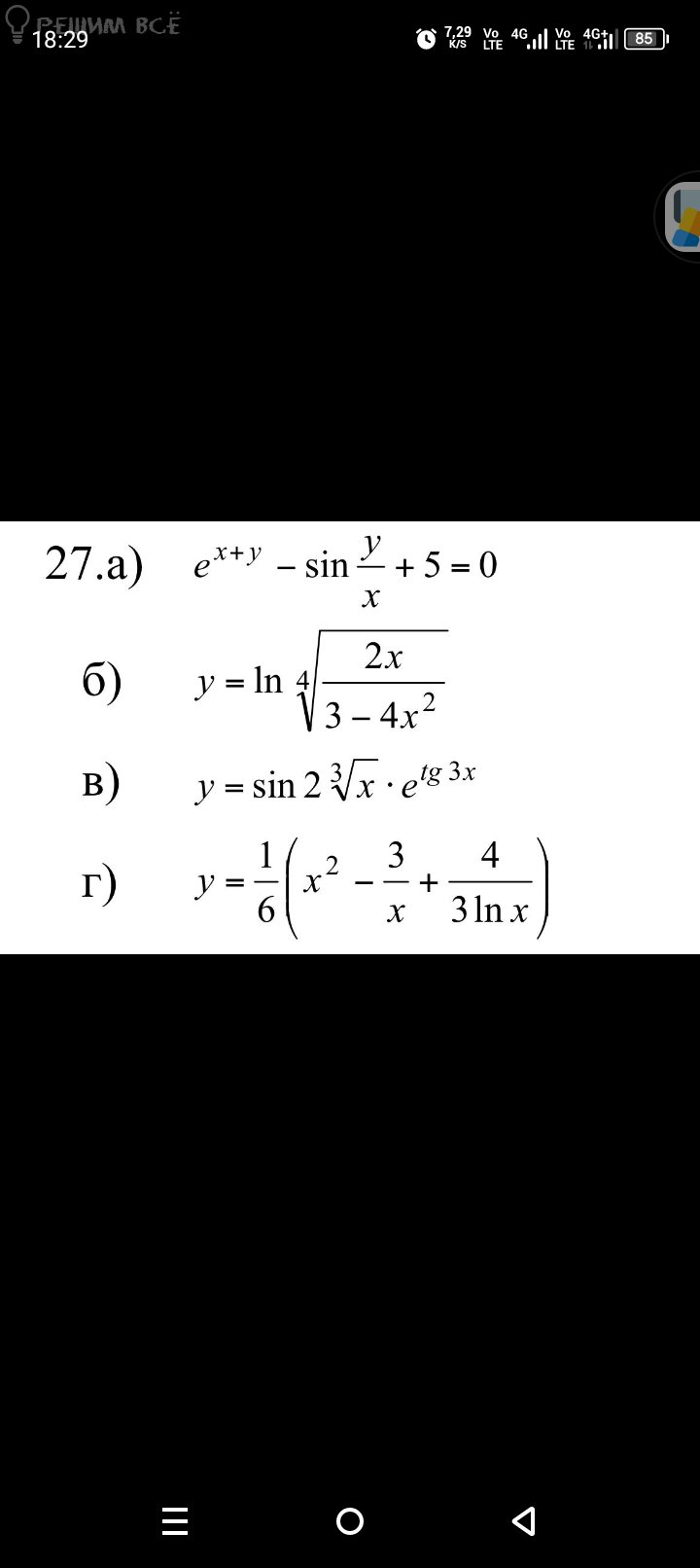 [m]e^{x+y} \cdot y' - \cos \frac{y}{x} \cdot \frac{y'}{x} + e^{x+y} + \cos \frac{y}{x} \cdot \frac{y}{x^2} = 0[/m]