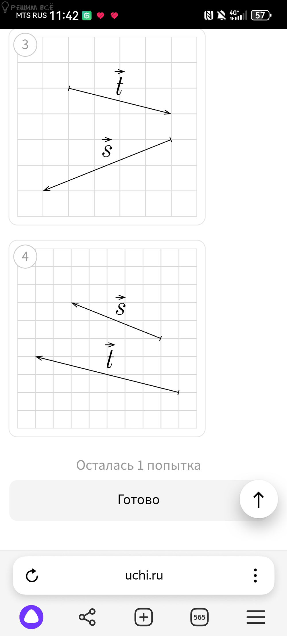 На рисунке изображены два неколлинеарных вектора m → m , n → n . Выбери верное построение векторов t → = m → + 0 , 5 n → t = m +0,5 n и s → = 1 2 n → + 2 5 m → s = 2 1 n + 5 2 m .