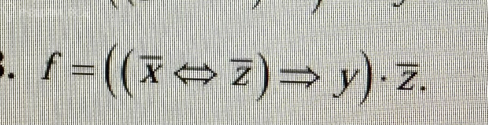 f = ((~x <=> ~z) => y) * ~z