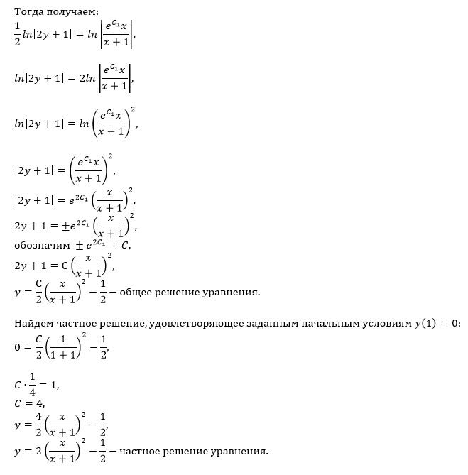 Определить тип дифференциального уравнения и найти его общее решение. Решить задачу Коши, если указано начальное условие.