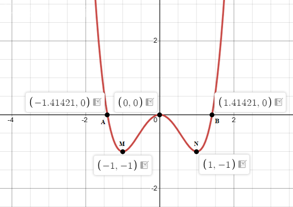 x1 = -1; y(-1) = (-1)^4 - 2*(-1)^2 = 1 - 2*1 = -1
