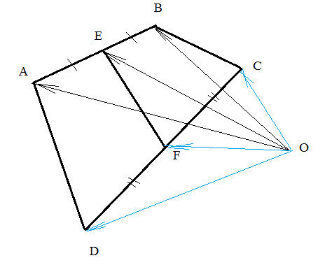 EF^(→)=OF^(→)-OE^(→)=(1/2)(OD^(→)+OC^(→))-(1/2)(ОА^(→)+ОВ^(→))=(1/2)(OD^(→)+OC^(→)-OA^(→)-^OB(→))=