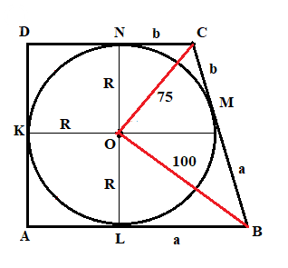 концов ее боковой стороны соответственно на 75 и 100 см. Вычислить площадь трапеции. Решить с рисунком