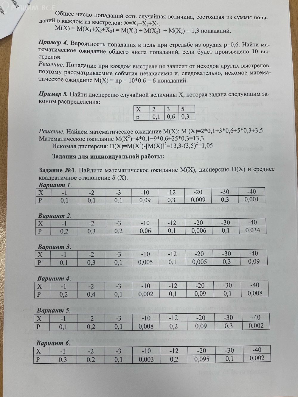 Чтобы найти дисперсию, нужно сначала найти ещё две величины: