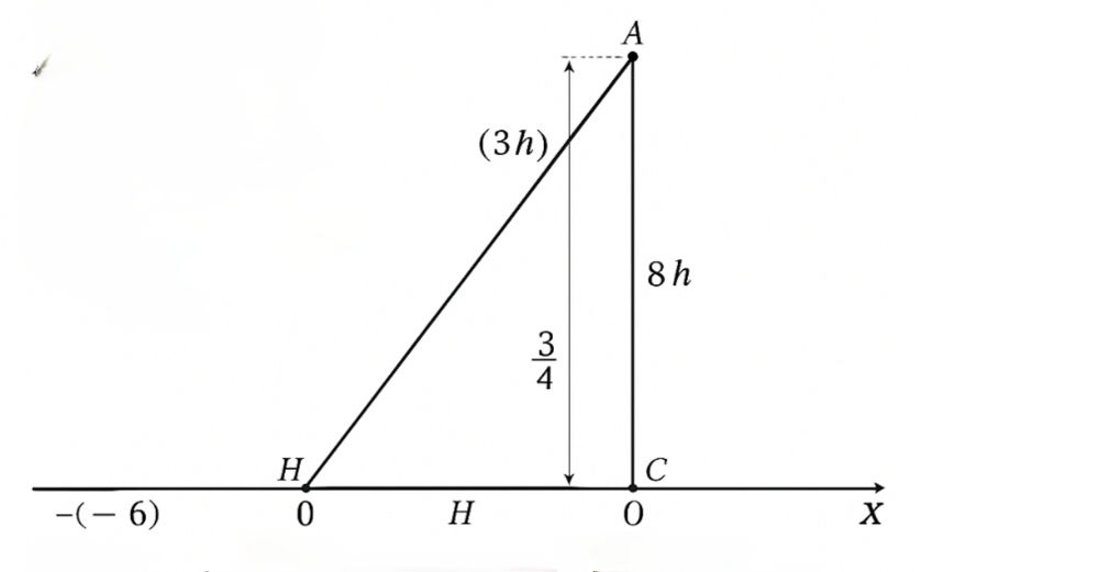 H(0, 0), B(-6, 0), C(8, 0), A(0, h)