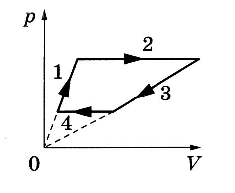 • Участок 2 ― горизонтальный (изобарический) отрезок; давление на нём максимально из всех четырёх процессов, а при этом и приращение объёма заметно. Площадь под линией 2 ‒ прямоугольник с высотой p≈рmax, поэтому она наибольшая.