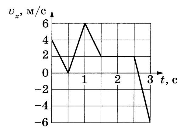 На графике для промежутка, включающего t = 2 с, линия vx горизонтальна (vx ≈ 2 м/с), то есть скорость не изменяется во времени. Поскольку наклон графика (dvx/dt) равен нулю, проекция ускорения в этот момент тоже равна нулю.