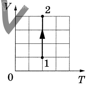 На VT-диаграмме показан вертикальный участок (V меняется, T остаётся постоянной), следовательно процесс изотермический: ΔT = 0.