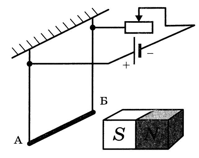 5. Проводник AB подвешен на двух тонких нитях. При наличии тока на