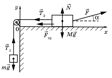 N = Mg – F sin α (Fу уменьшает «прижим») ⇒ f = μ(Mg – F sin α) – тоже постоянна;