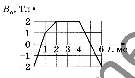 2. От 2 до 4 мc Bₙ = +2 Тл ⇒ Φ = 2 Тл · 0,006 м² = 0,012 Вб = 12 мВб.