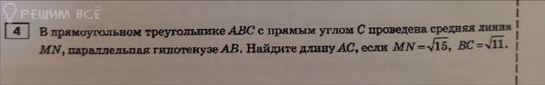 Дано: ΔABC, ∠ С = 90°, MN - средняя линия, MN || AB