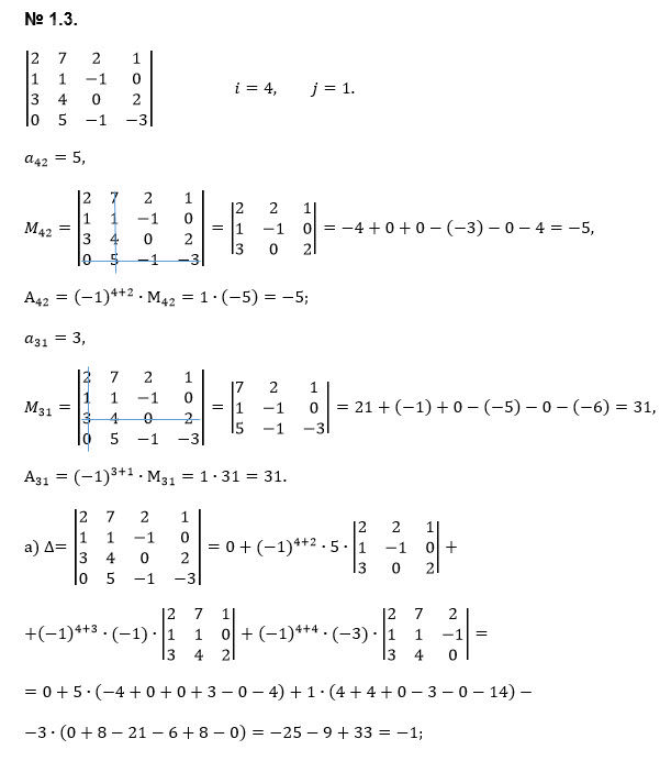 1. Для данного определителя Δ найти миноры и алгебраические дополнения элементов a₁₂, a₃₃. Вы–