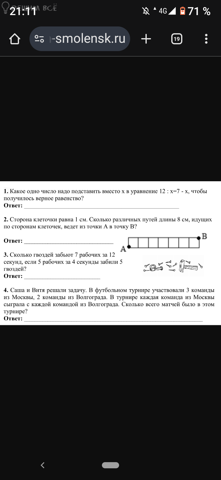 3. Сколько гвоздей забьют 7 рабочих за 12 секунд, если 5 рабочих за 4 секунды забили 5 гвоздей?
