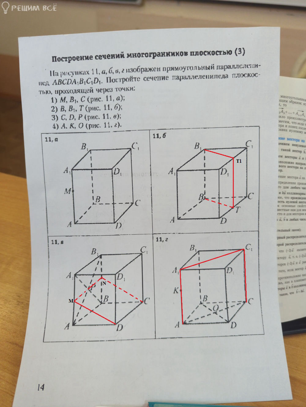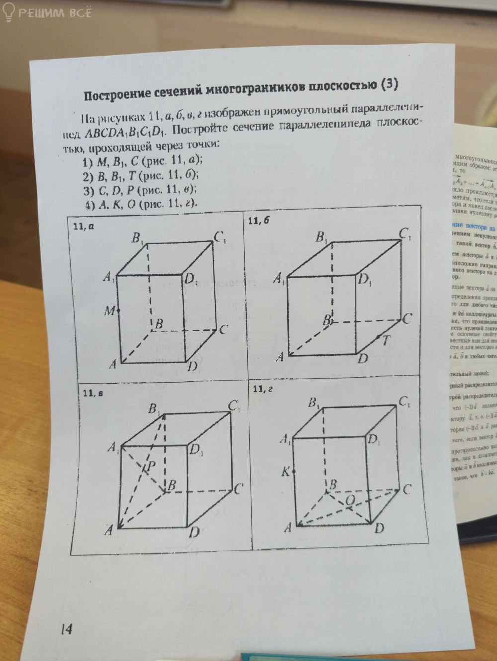 На рисунках 11, а, б, в, г изображен прямоугольный параллелепипед ABCDA1B1C1D1. Постройте сечение параллелепипеда плоскостью, проходящей через точки: