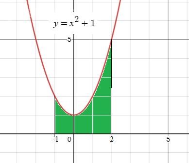 [m]S=\int \limits_{-1}^{2} (x^2+1)dx = \frac{x^3}{3}+x \bigg |_{-1}^{2} =[/m]