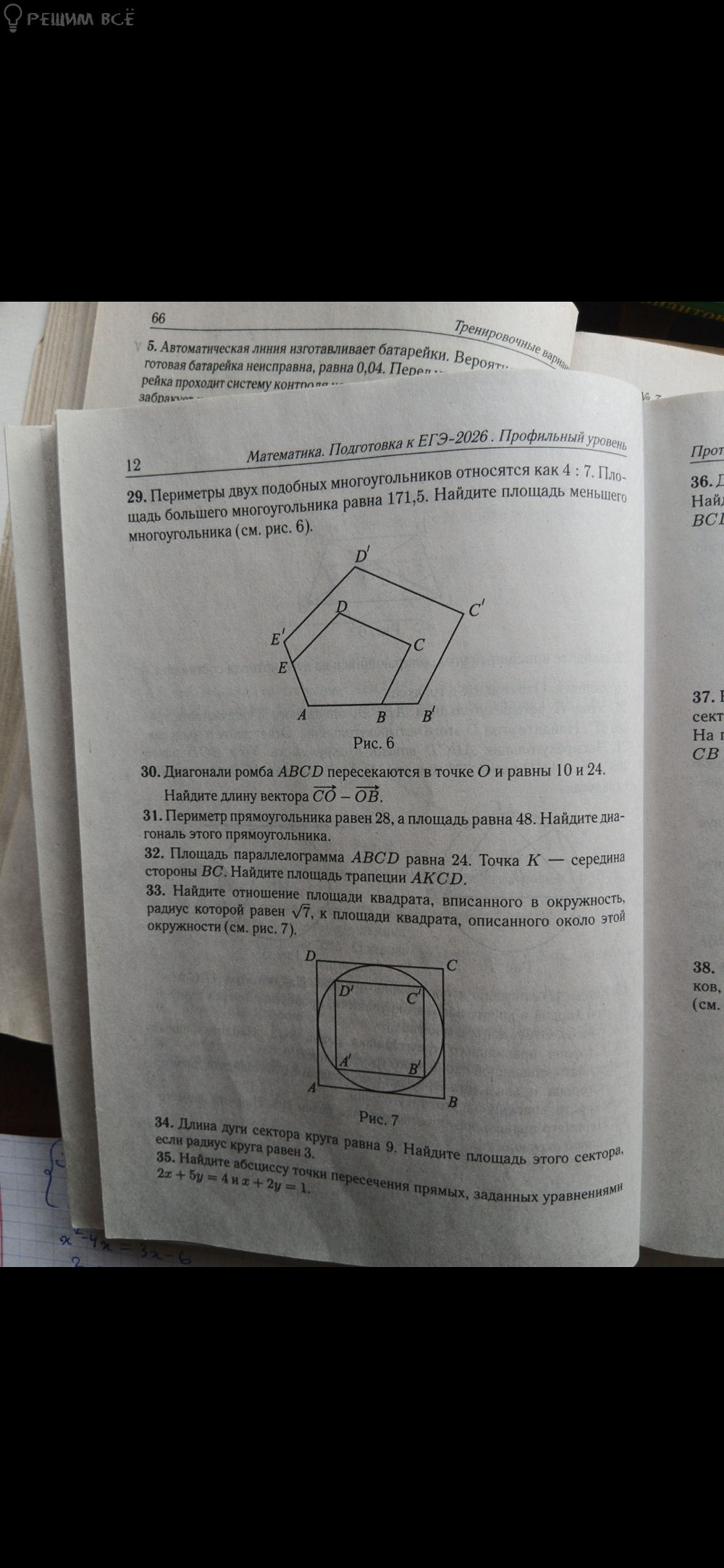29. Периметры двух подобных многоугольников относятся как 4 : 7. Площадь большого многоугольника равна 171,5. Найдите площадь меньшего многоугольника (см. рис. 6).