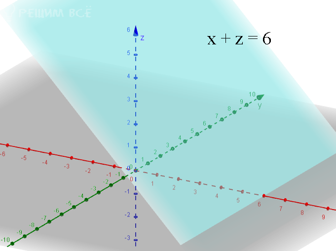 x + z = 6 (наклонная плоскость, параллельная оси y) см на рис. 3 эту плоскость