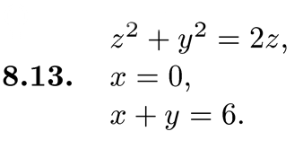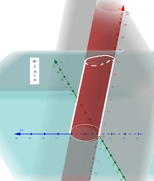 Цилиндр z^2+y^2=2z , ограниченный снизу плоскостью x=0 , а сверху наклонной плоскостью х+у=6 ( см. рис.4)