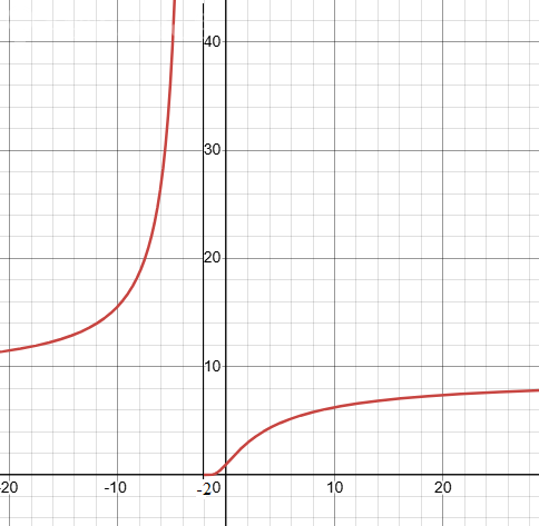 График на рисунке. Асимптота показана тонкой линией.