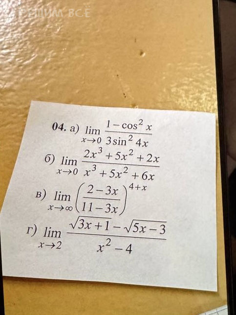 г) [m]\lim \limits_{x \to 2} \frac{\sqrt{3x+1} - \sqrt{5x-3}}{x^2-4}[/m]