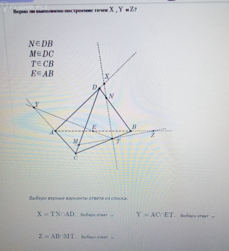 Точки A, C, E, T - все находятся в плоскости ABC,