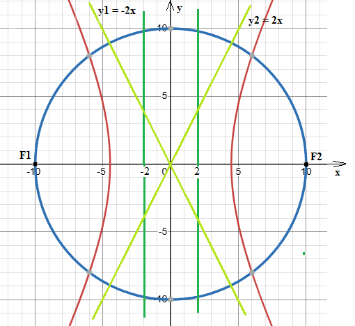 [m]F_1(-c; 0) = (-10; 0);\ F_2(c; 0) = (10; 0)[/m]