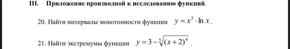 y' = 3x^2*ln x + x^3*1/x = 3x^2*ln x + x^2 = x^2*(3ln x + 1) = 0