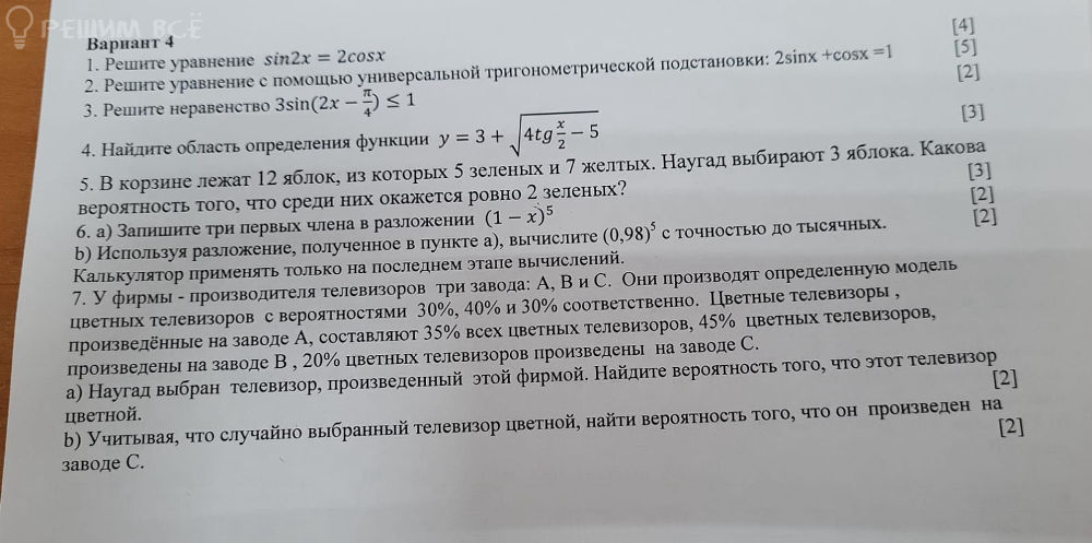 4. Найдите область определения функции y = 3 + sqrt(4tan(x/2) - 5)