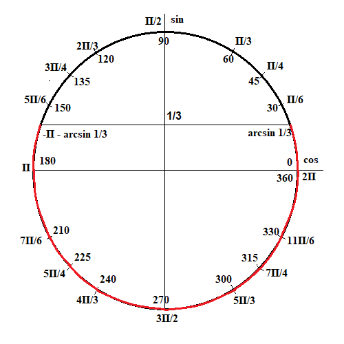 и заканчиваем положительным числом arcsin 1/3 + 2π*k, k ∈ Z.