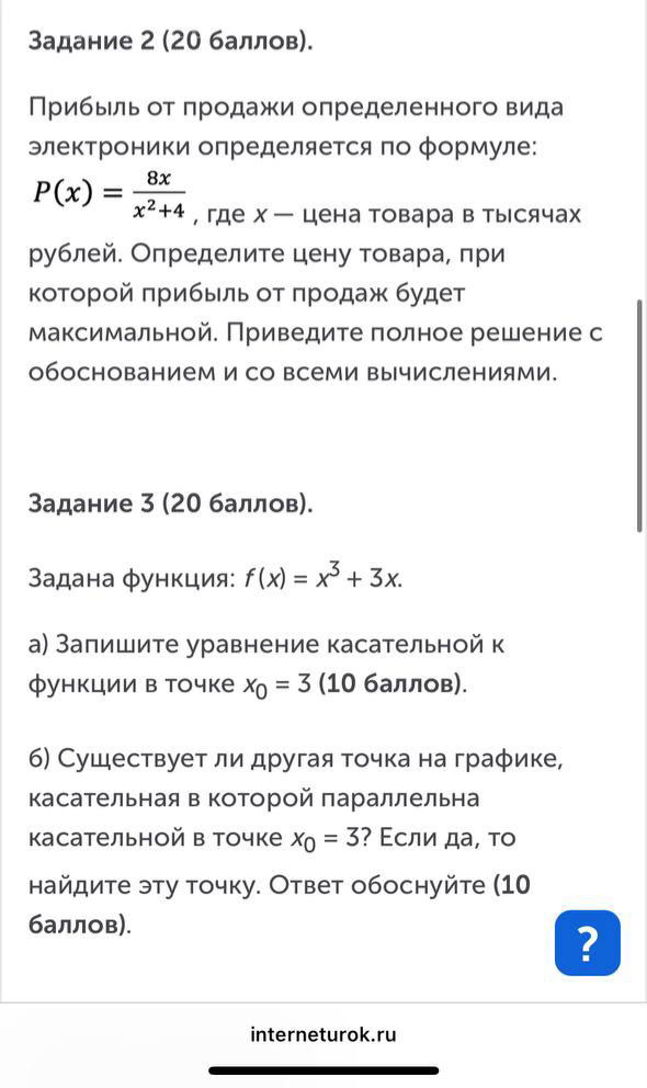 2) Прибыль: [m]P(x) = \frac{8x}{x^2+4}[/m], где x - это цена товара.