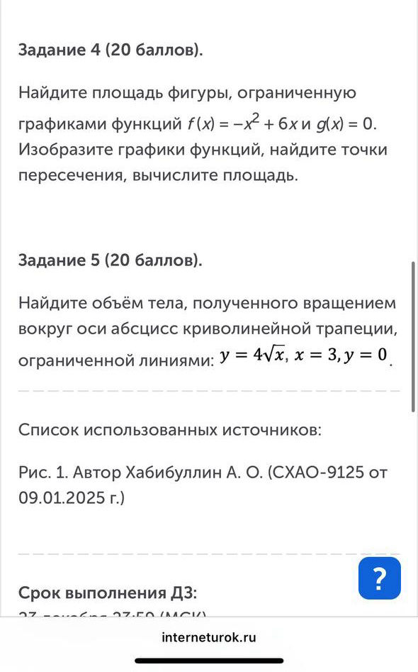 Нам надо найти объем теле, образованного этой фигурой при вращении вокруг оси Ox.