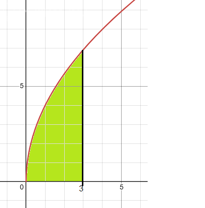 [m]V = π \int \limits_0^3 f^2(x) dx = π \int \limits_0^3 16x dx = π \cdot 8x^2 \bigg |_0^3 =[/m]