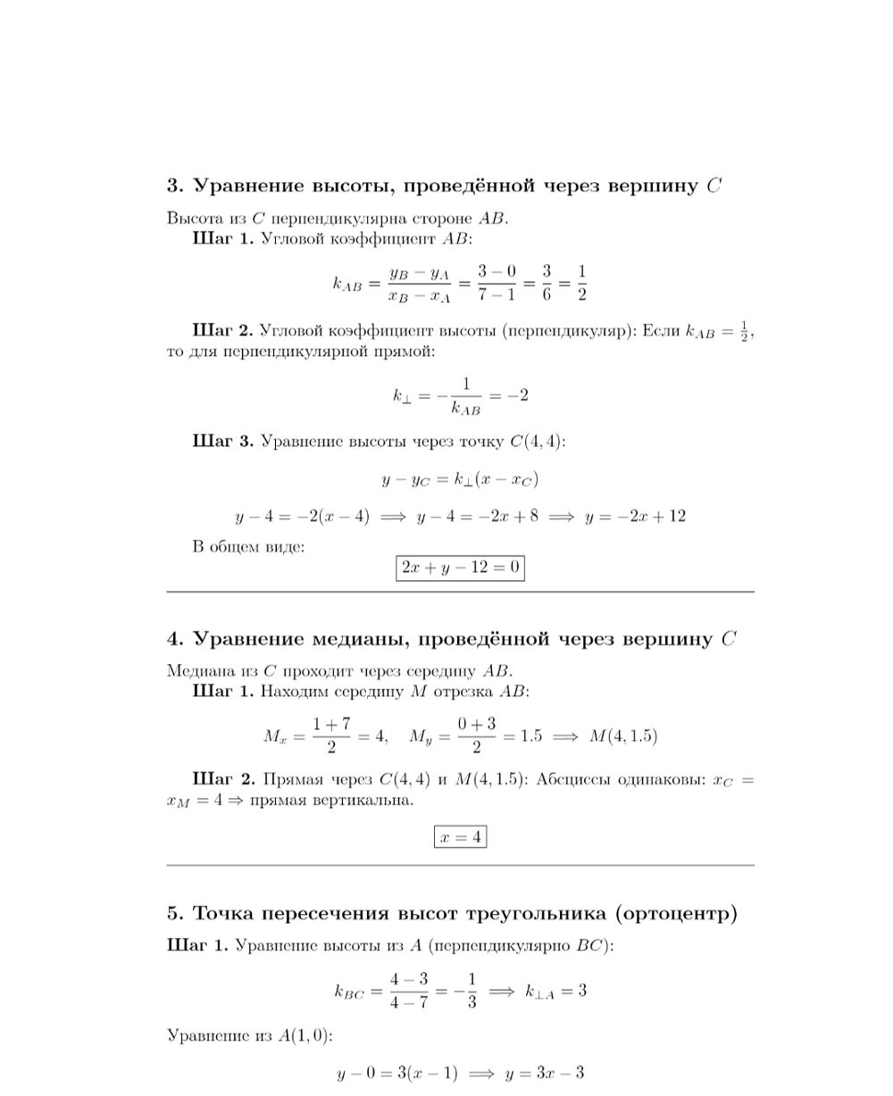 3) уравнение высоты, проведенной через вершину С; 4) уравнение