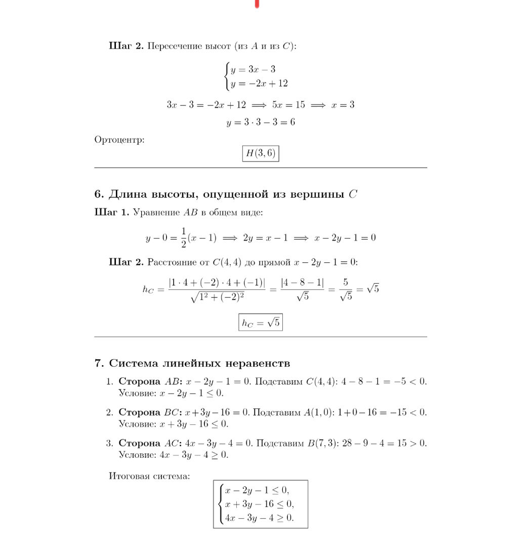 линейных неравенств, определяющих треугольник АВС. Сделать чертеж 10. А(1;0) В(7;3) С(4;4)