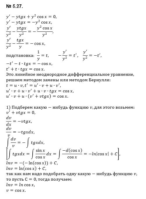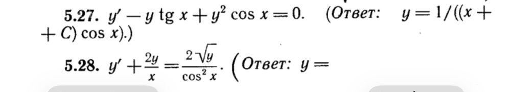 5.27. у' — у tgx †y cos x=0. (Ответ: у =...