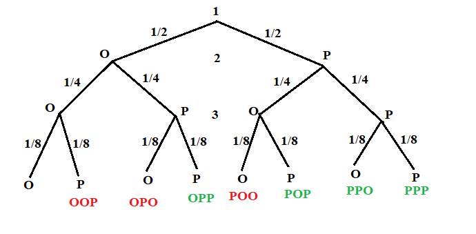 По какой цепочке нужно пройти, чтобы получить каждый из таких исходов, я думаю, ясно из рисунка.
