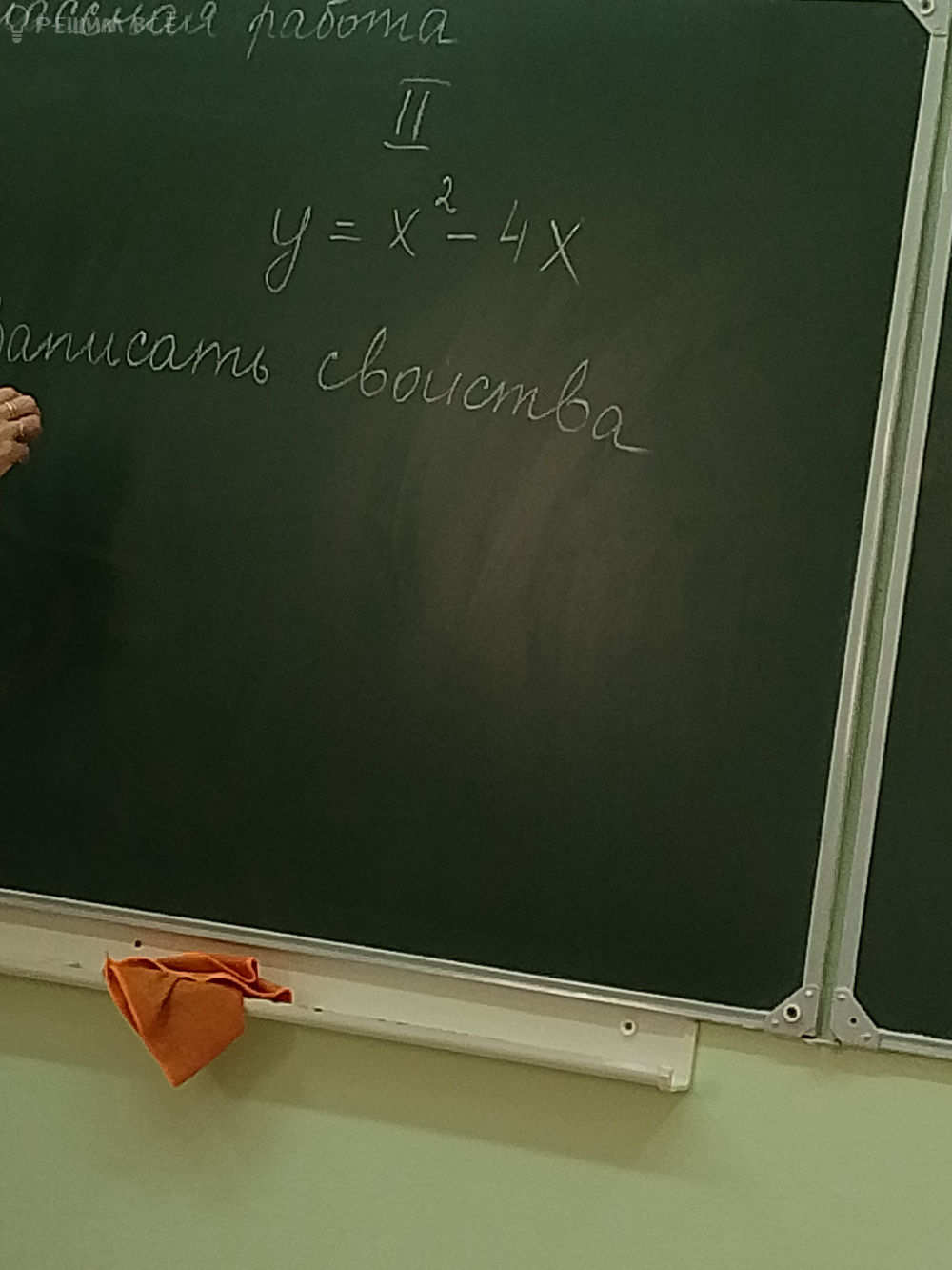 y=0 при x^(2)-4x=0, откуда х=0 или х=4, т.е. график пересекает ось Ох в точках (0;0) и (4;0).