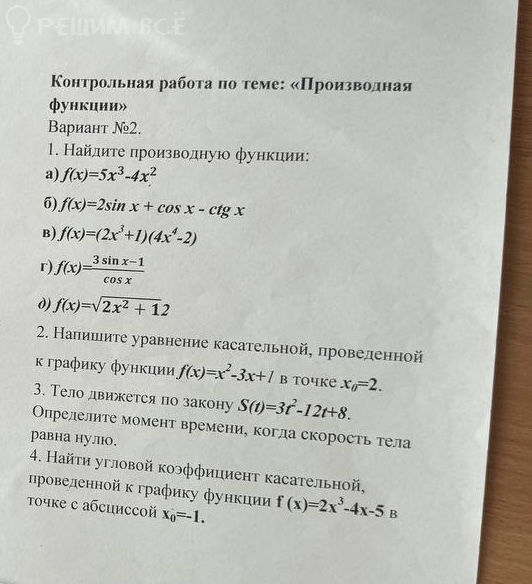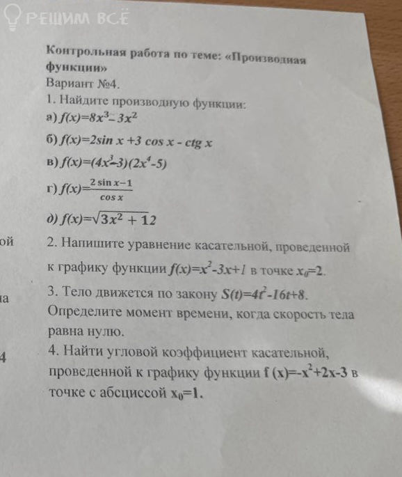 Решите 2 и 4 вариант по теме “производная функции»????????